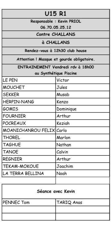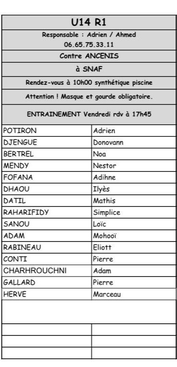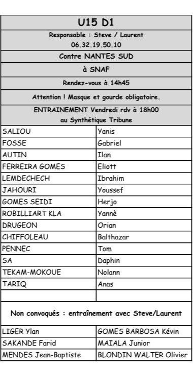 Convocations U15 - U14