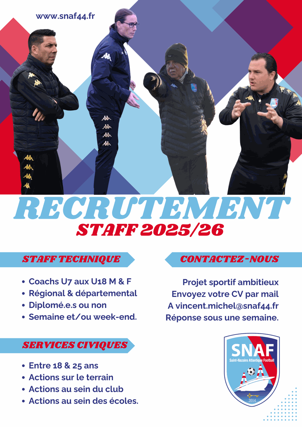 POUR LA SAISON 25/26, LE SNAF RECRUTE DES ÉDUCATRICES, DES ÉDUCATEURS, DES DIRIGEANT.E.S ET 2 VOLONTAIRES EN SERVICE CIVIQUE !